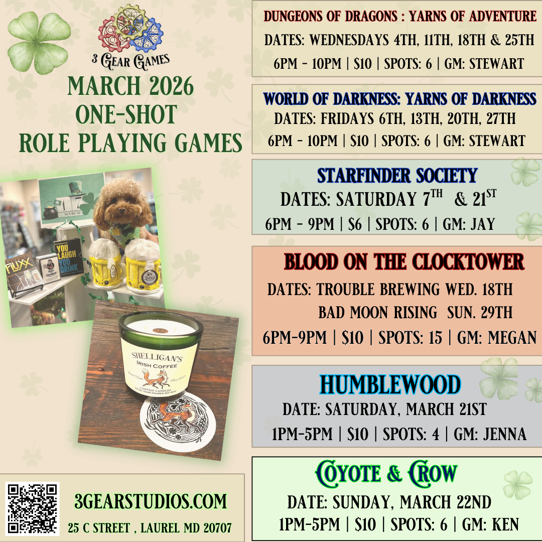 Our GMs have crafted incredible RPG campaigns running weekly or bi-weekly from March to May 2026. Spots are limited and fill fast. Secure your seat at the table before these sessions disappear. Learn more and sign up using the link below